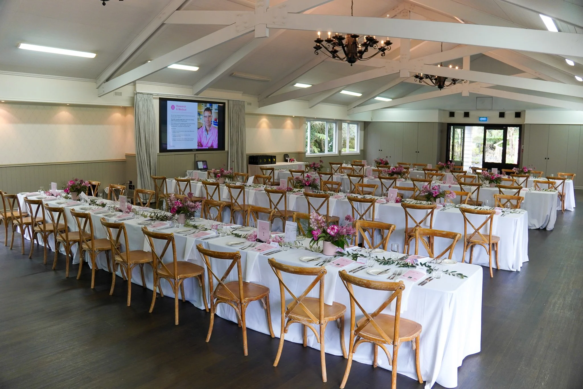 A 103-inch wall-mounted screen, microphone and surround sound facilities, dimmable lighting, and high vaulted ceilings create a polished and adaptable event environment. Events are supported by a dedicated Event Coordinator, with access to a fully stocked in-house bar, private Pavilion kitchen, tea and coffee facilities, and a private internal alcove area (4m x 5m).